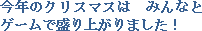 崱擭偺僋儕僗儅僗偼丂傒傫側偲僎乕儉偱惙傝忋偑傝傑偟偨両